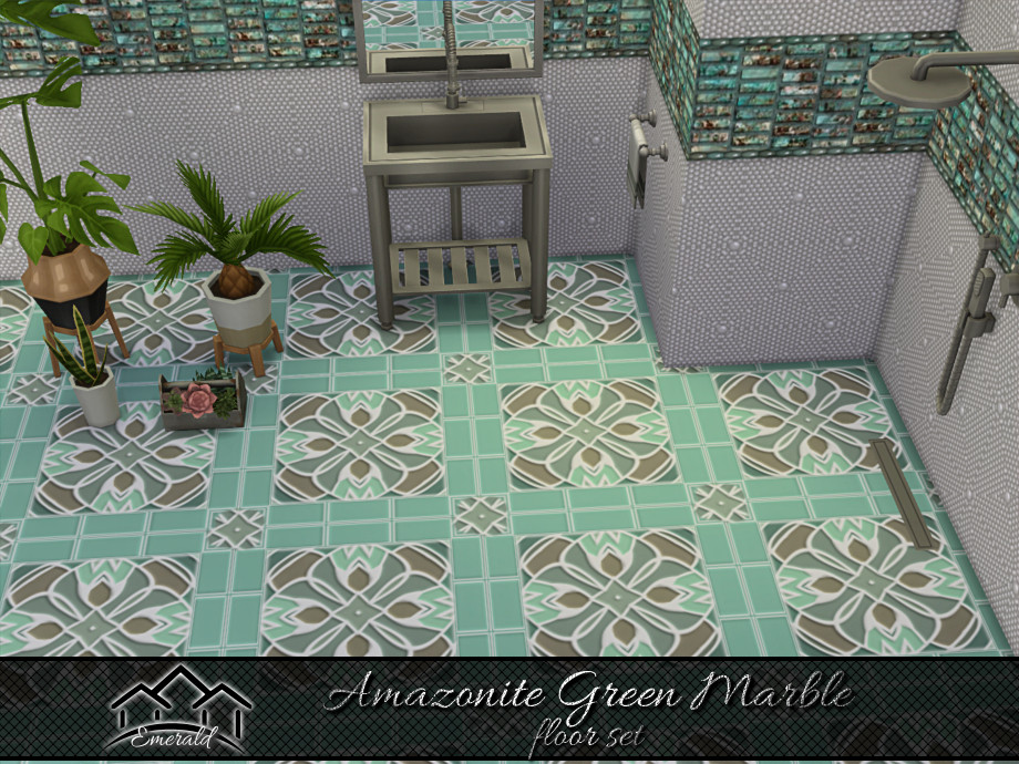 Sims 4 — Amazonite Green Marble floor set by Emerald — Amazonite green marble is a natural stone with deep green and