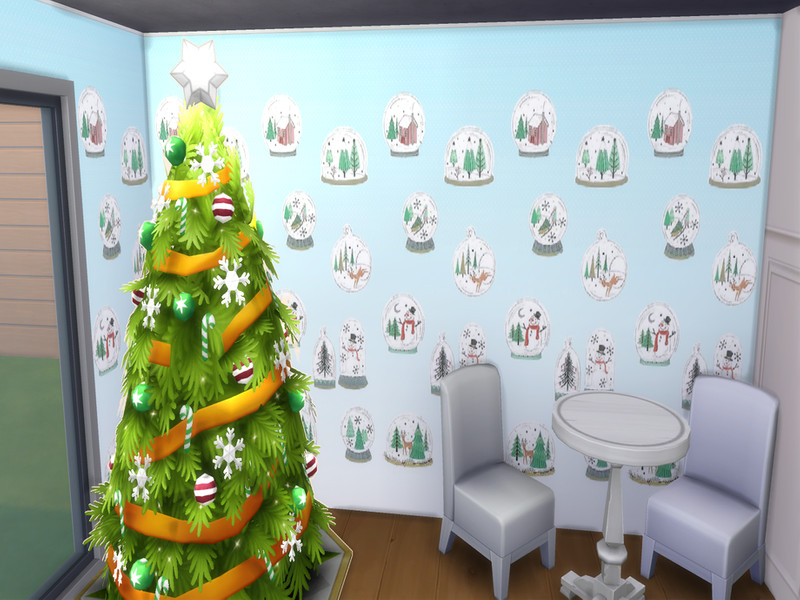 Sims 4 — Snowglobe Xmas Wallpaper by lavilikesims — 2 walls for the xmas season, all wall sizes