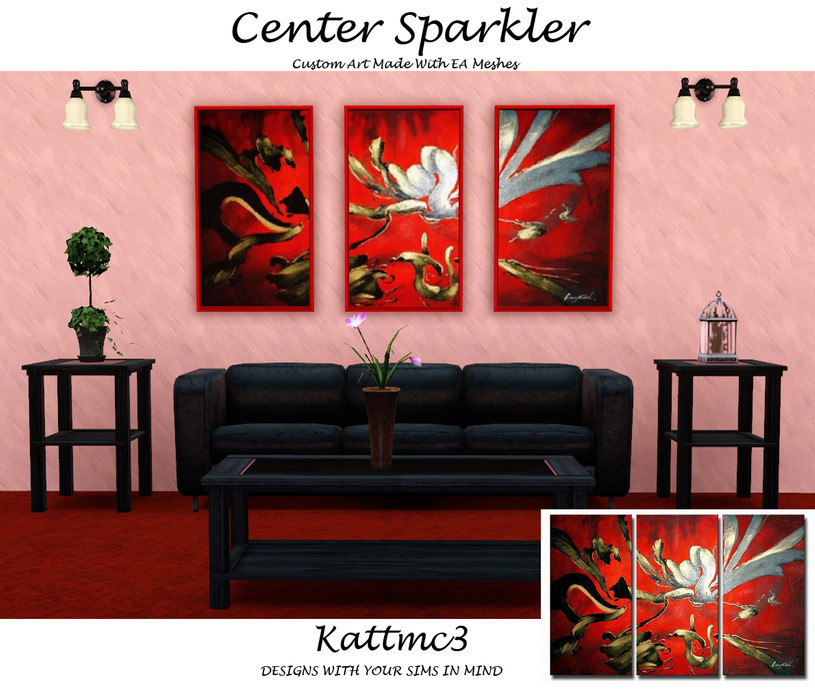 CENTER SPARKLER is a 3 piece picture. It has an asian feel to it and great red and gold colors. All three pictures come together to make this one beautiful picture. Enjoy Kattmc3