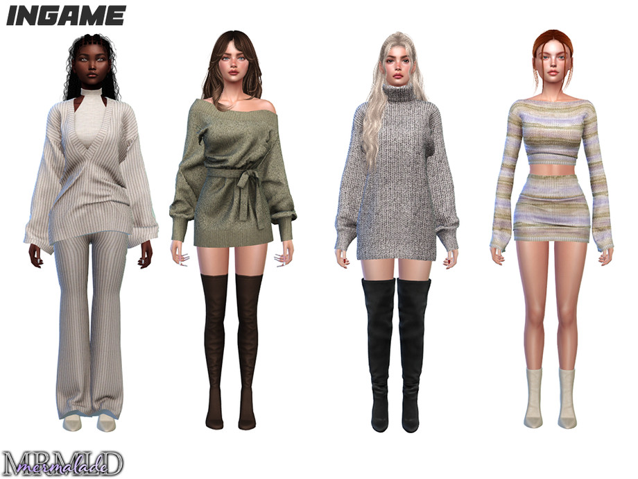Modern Cozy Ribbed Wrap Knit Top New Mesh 10 Swatches All Lods Teen, Adult Elder For Female Modern Cozy Ribbed Wide Knit Pants New Mesh 10 Swatches All Lods Teen, Adult Elder For Female Modern Cozy Belted Knit Dress New Mesh 8 Swatches All Lods Teen, Adult Elder For Female Modern Cozy Striped Knit Crop New Mesh 5 Swatches All Lods Teen, Adult Elder For Female Modern Cozy Striped Knit Mini Skirt New Mesh 5 Swatches All Lods Teen, Adult Elder For Female Modern Cozy Turtleneck Knit Dress New Mesh 10 Swatches All Lods Teen, Adult Elder For Female