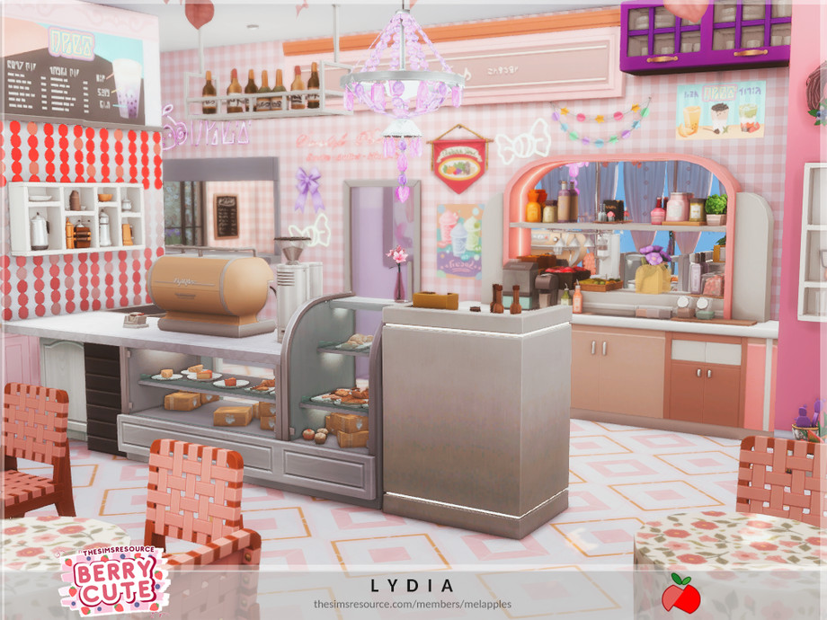 a cute berry themed restaurant with a tiny apartment on the 2nd floor.