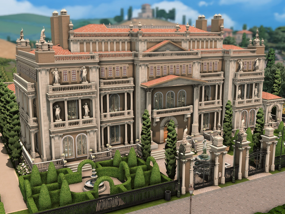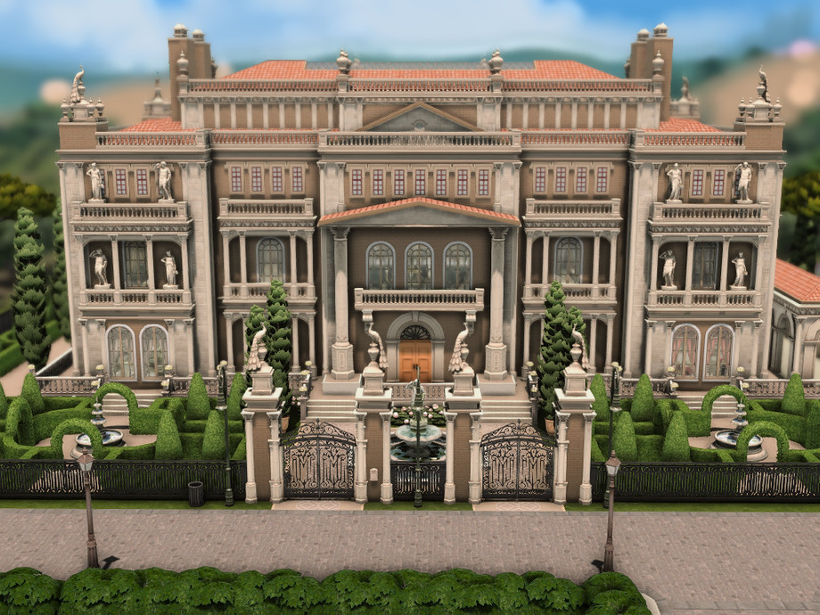 Monumental columns, sculptures, and intricately crafted balconies reveal an atmosphere of luxury, tradition, and aristocratic sophistication.