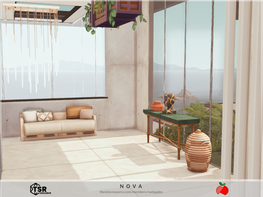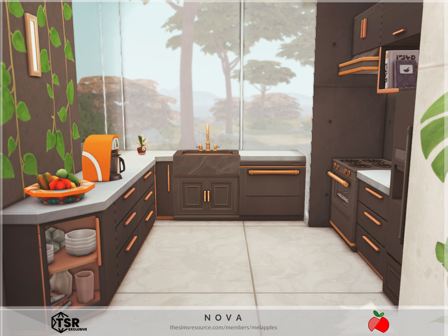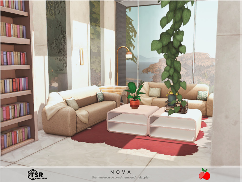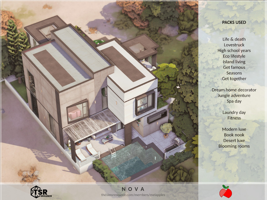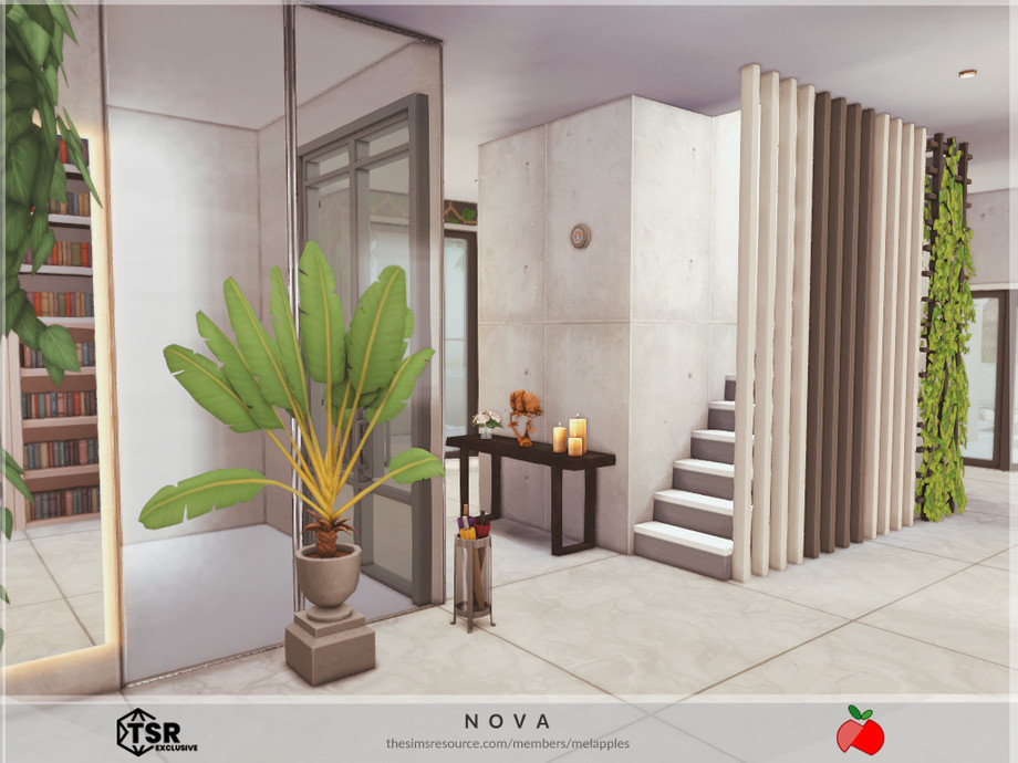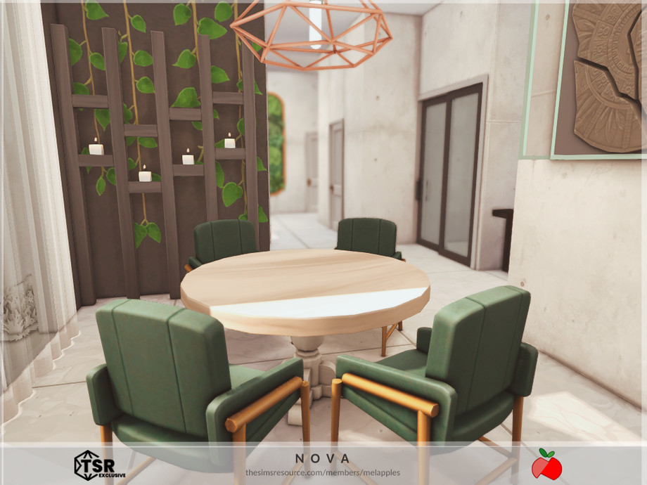 Sims 4 — Nova - no cc by melapples — a modern double storey home with a dark palette. 1st floor: living room 1, dining