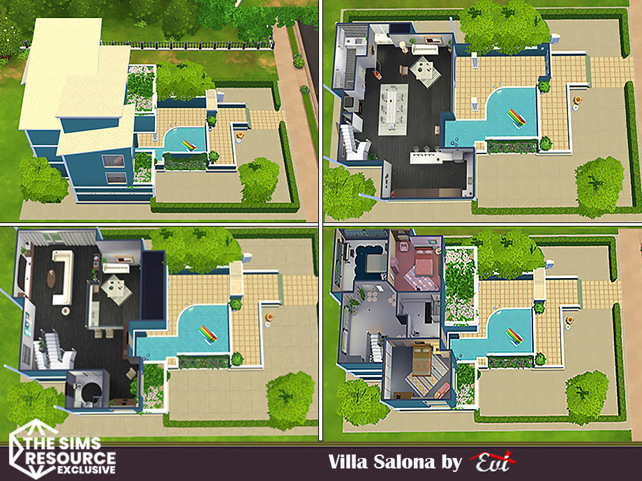 Sims 4 — Villa Salona by evi — A three floor comfortable villa with a pool. Three bedrooms and three bathrooms