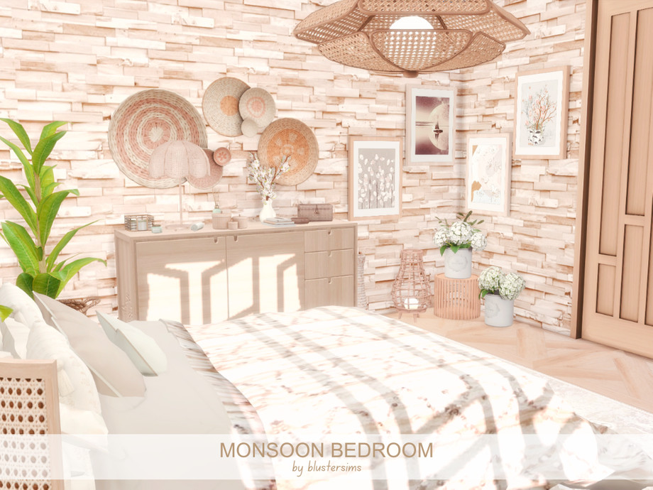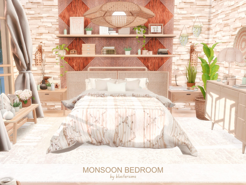 The Monsoon Bedroom is a serene, sun-washed retreat layered in soft neutrals, woven textures, and lush greenery. Natural light, warm wood, and airy fabrics create a calm, rain-kissed sanctuary that feels cozy yet effortlessly fresh.