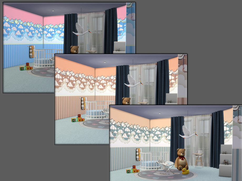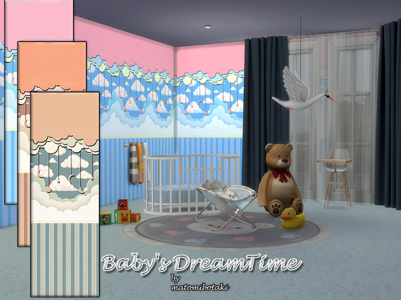 Cute children's wallpaper with many loving details in 3 different colors and 3 wall heights, each item with custom thumbnail, created for Sims 4 by matomibotaki.