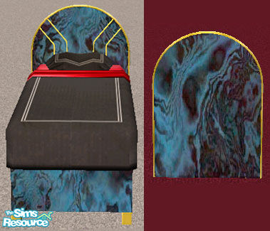 Lapis-gold recolor of my Ashley Cataline Single bed. In this version the back of the headboard is also lapis. Trim and accents are gold.