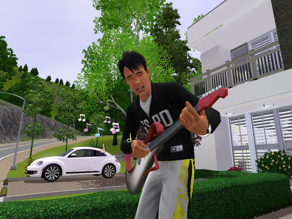 Haru loves to play the guitar, which explains why he's in the music business in Sunset Valley.