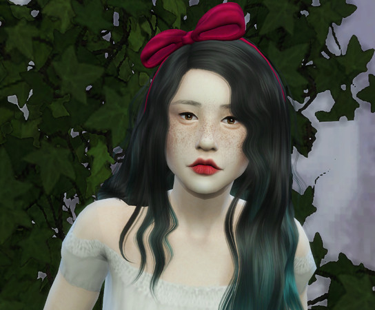 I made a new sim. She kind of reminds me of Snow White,but a more modern version,with ombre hair and all.