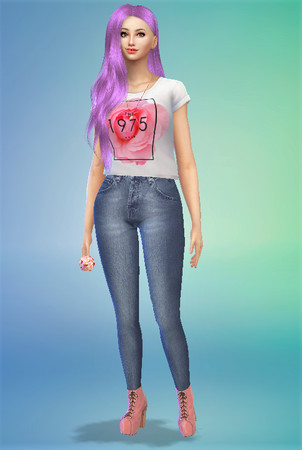 I don't usually make a sim with bright hair and clothes, but I really like how she turned out.